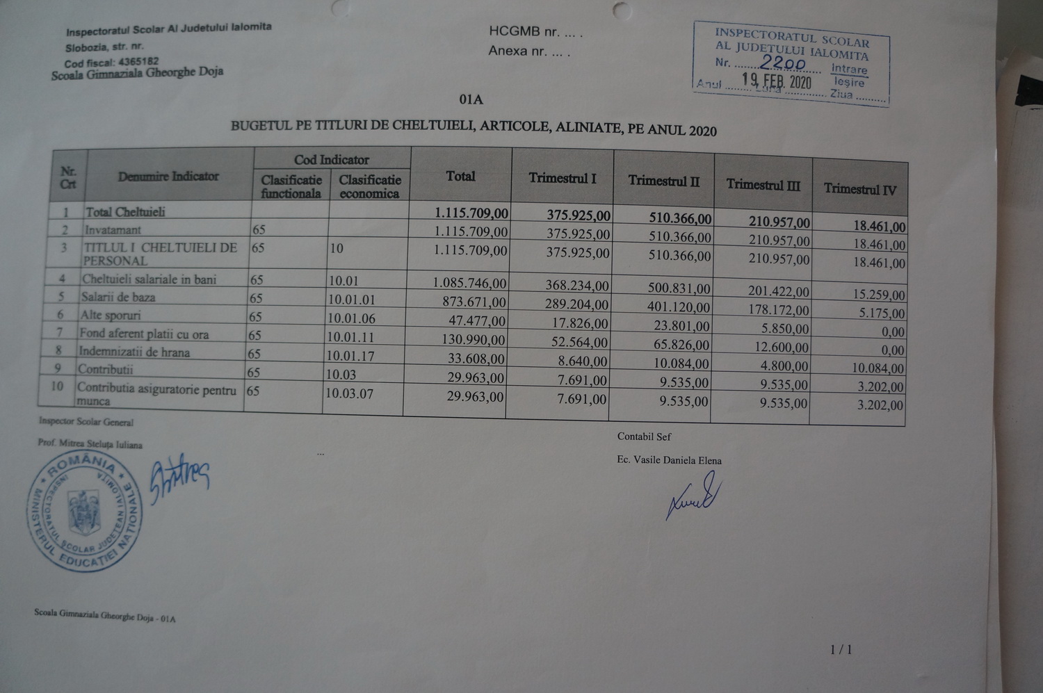 Buget februarie
